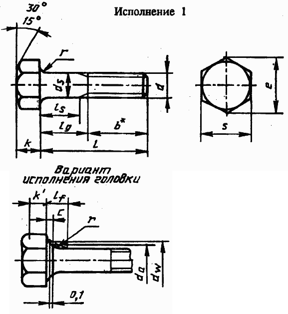 Конструкция и размеры болтов должны соответствовать указанным на рисунке 1 и в таблицах 1 и 2.